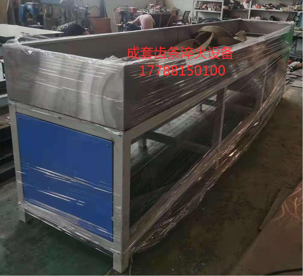 齒條是一種齒分布于條形體上的特殊齒輪,是與齒輪相配的一種條形零件,它等于直徑無限大的一個(gè)齒輪周緣的一段。根據(jù)齒輪的不同,齒條又分為直齒齒條和斜齒齒條,分別與直齒圓柱齒輪和斜齒圓柱齒輪配對(duì)使用。齒條之所以要淬火是因?yàn)楣ぷ鳁l件的限制,目的就是增加齒的硬度,提高齒條的質(zhì)量,為了大幅提高鋼的剛性、硬度、耐磨性、疲勞強(qiáng)度以及韌性等,從而滿足各種機(jī)械零件和工具的不同使用要求。生產(chǎn)中經(jīng)常會(huì)遇到齒條的淬火,而實(shí)踐告訴我們,每種齒條經(jīng)淬火后都會(huì)產(chǎn)生不同規(guī)律的變形。一般情況下,齒條淬火采用縱向和橫向復(fù)合磁場(chǎng)感應(yīng)加熱淬火,選用的是高頻淬火設(shè)備。