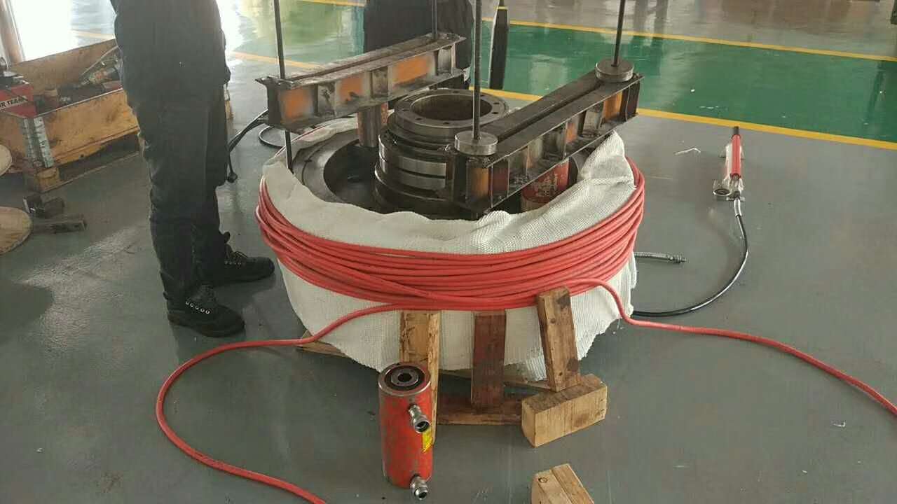 全數(shù)字風冷式大型工件拆卸熱裝設備,采用電磁感應加熱的方式,可廣泛應用于軸承、齒輪、鏈輪、對輪、聯(lián)軸器、連接軸、平衡軸、軋輥、電機轉子、水泵葉輪等工件的拆卸和熱裝。大型工件焊前預熱。各種模具預熱。設備特點: 1、無需通水,全風冷結構,使安裝更為簡單,使用更為方便,并且減少了一項很大的設備故障隱患點。 2、柔性加熱線圈,可以不受工件大小、外形的影響,均可實現(xiàn)熱裝熱拆。 3、手動、自動、溫控 三種使用模式,為客戶提供了多種的操作選擇。 4、數(shù)字嵌入式控制系統(tǒng)提高了設備的精度的同時使設備更為穩(wěn)定、高效。 5、全數(shù)字式的控制,設備頻率、功率能夠根據(jù)工件的大小,以及復雜程度進行自適應,并配合九種報警模式從而大大減少操作人員誤操作引發(fā)設備損害和安全隱患。 熱拆熱裝的工藝原理: 利用金屬本身的熱脹冷縮的特性,通過感應加熱的方式,使軸套自身迅速感應加熱升溫,達到軸套與軸體產(chǎn)生溫差的效果,使其產(chǎn)生過盈間隙而分離,在熱量未傳至軸承時,迅速將軸體撥出或將軸套拆下。 全數(shù)字風冷熱拆熱裝設備、電機熱拆熱裝設備和齒輪熱拆熱裝設備是我公司研制的新型過盈熱拆裝設備,功率10KW~200KW(如120KW的設備可對直徑1.3m左右的聯(lián)軸器進行熱拆作業(yè)),此設備利用新工藝,功效可提高10-20倍,質量穩(wěn)定,不會出現(xiàn)過燒現(xiàn)象,大大降低工人的勞動強度。